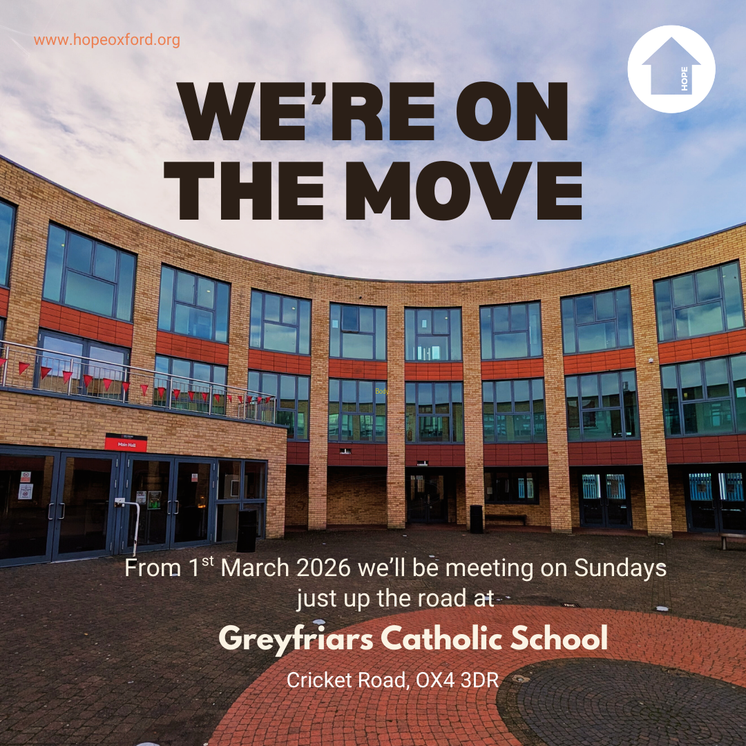 From 1st March 2026 we’ll be meeting at 10am on Sundays just up the road at Greyfriars Catholic School, OX4 3DR.