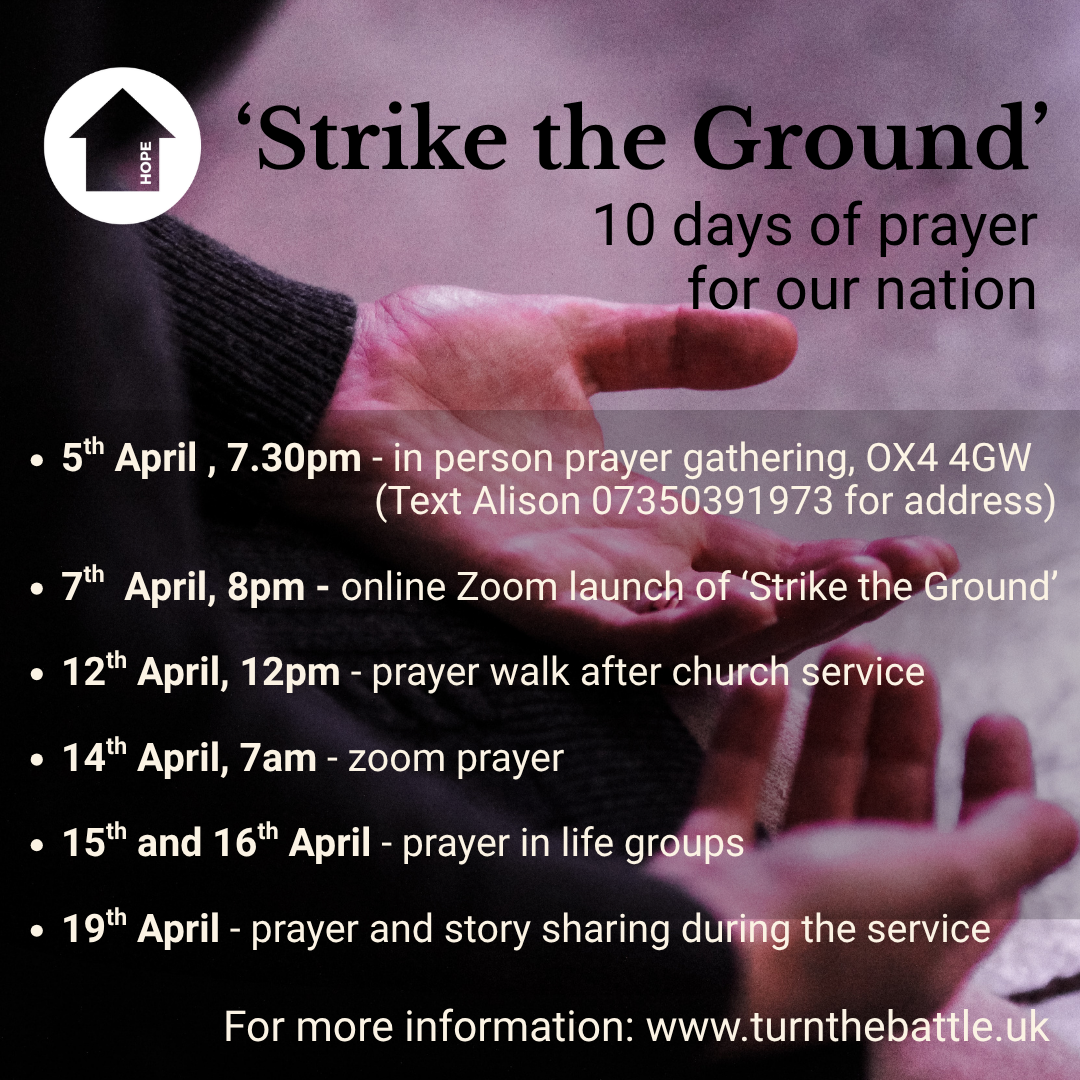 Sunday: And on Easter Sunday, there’s no Sunday Breakfast, but we’re having a special Easter Service, with everyone in together. 10am, at our new venue at Greyfriars Catholic School, Cricket Road, OX4 3DR.