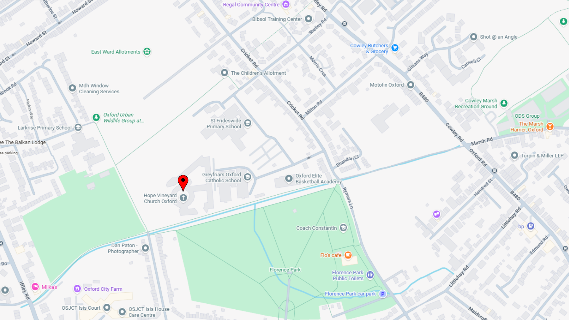Driving: Parking is free within Greyfriars School. However, Greyfriars School is only accessible by car from the Cowley Road side, so you will need to cut through to Cricket Road on Shelley Road or Howard Street.